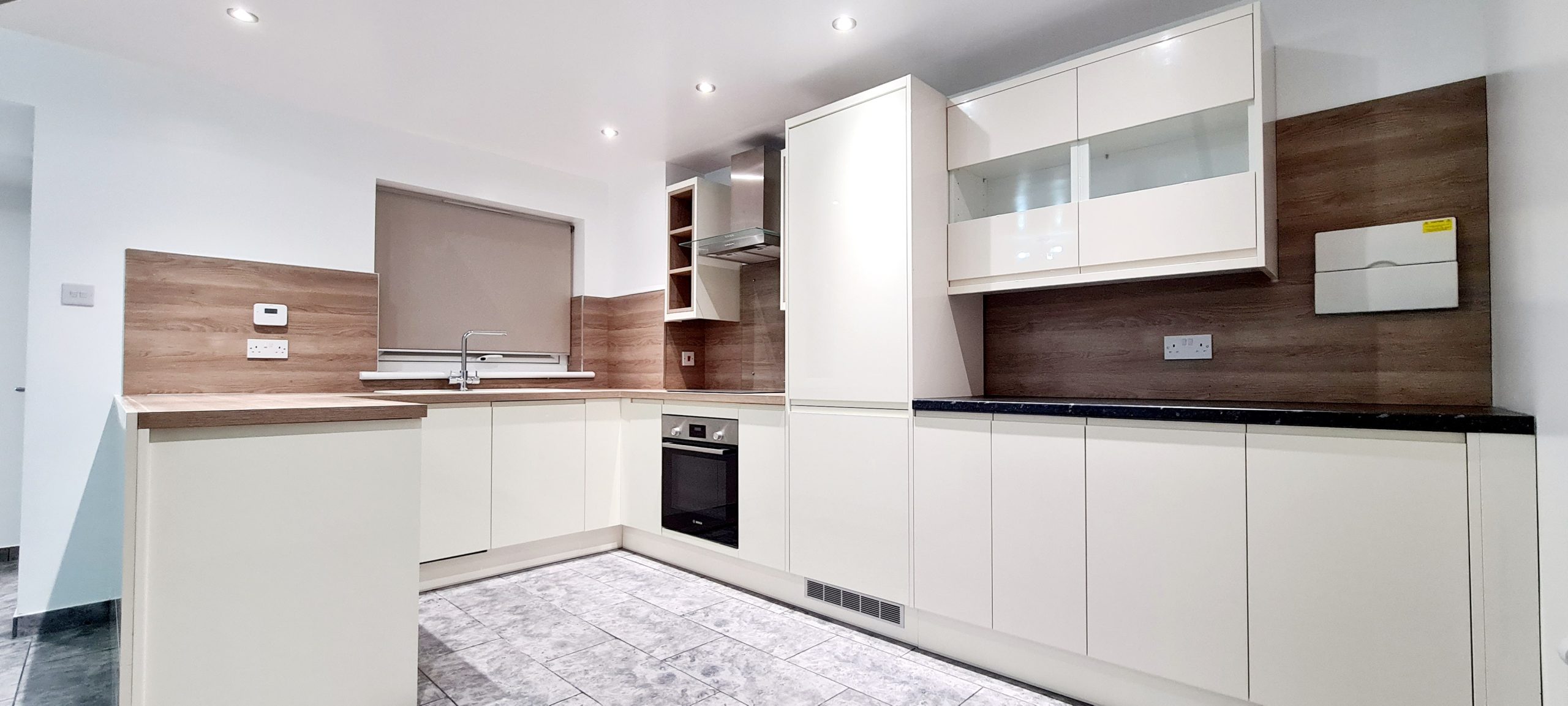 - Installation of a brand-new kitchen with modern units, appliances, and fittings
